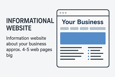 Our Informational Website package is designed to showcase your business in a clean, professional, and user-friendly format. This website includes approximately 4–5 pages—perfect for presenting your services, company profile, contact details, and other essential information. Built with responsive design, it ensures your visitors have a seamless experience on desktops, tablets, and mobile devices. Ideal for small to medium-sized businesses wanting a strong, credible online presence without the complexity of a large site..